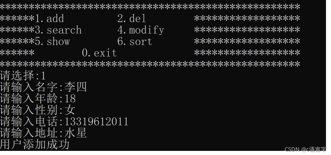 存放100个用户信息(名字,电话,性别,地址,年龄)