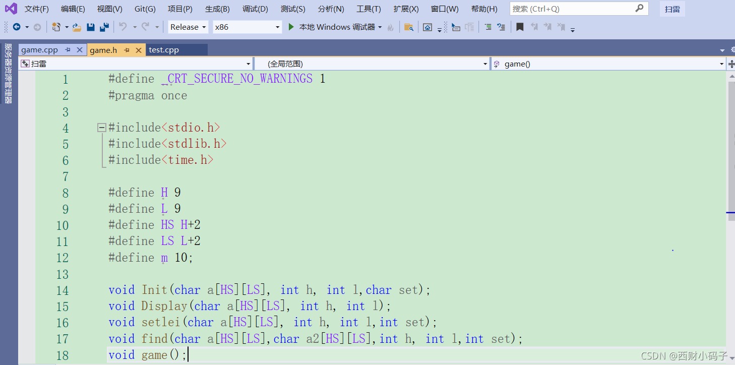 最后则是相当于一个传参的game()实现功能,这个是写在最后的,只要注意传参不要失误那么这个扫雷游戏是没有那么复杂的!