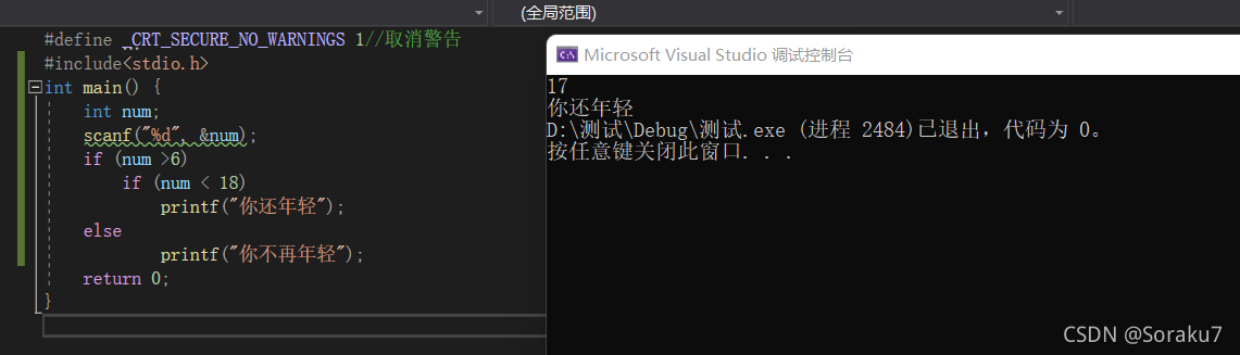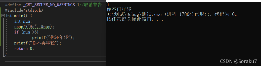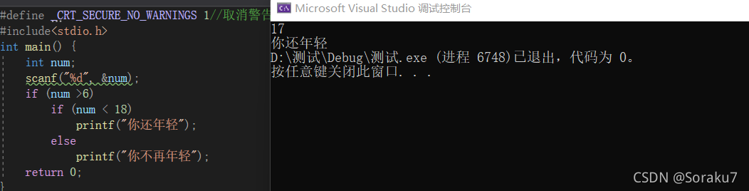 printf("你还年轻");