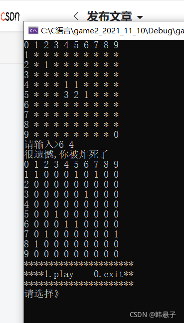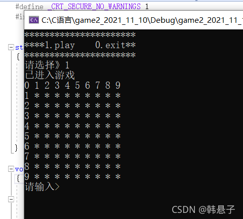 因为是同一个函数所以可以用同一个函数来打印棋盘,但是因为放置雷的棋盘是不能给玩家看到的,所以打印棋盘只是用来我们自己来测试代码是否有写错的。