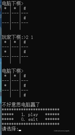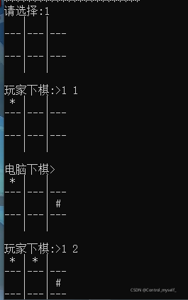 //数据存储到一个字符的二维数组中,玩家下棋是'*',电脑下棋是'#',