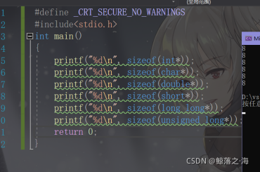 ? ? ?指针变量是一种变量类型,在32位中(32个bit即4个B)占四个字节的空间大小(无论什么类型的地址,都属于指针变量的类型,32上均为4个字节),64位中占8个字节的空间