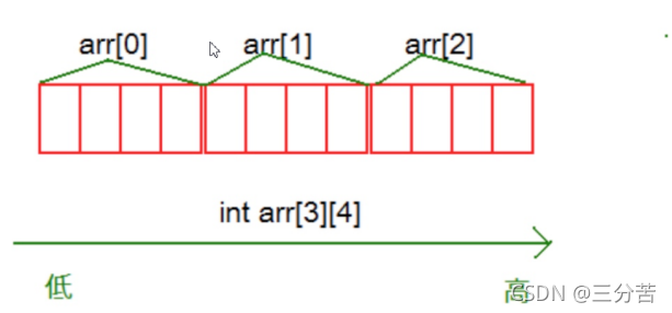 int arr[3][4] = { (1,2),(3,4),(5,6) };//第一行放1,2 第二行放3,4 第三行放5,6