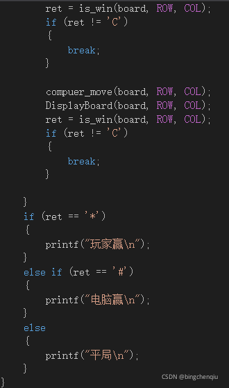 对应test.c中判断胜负的代码块