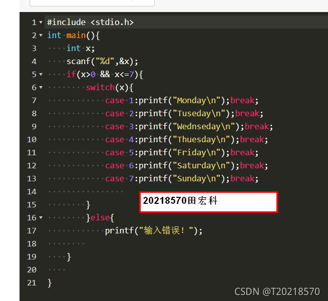 1.3 根据输入的整型数据x,其取值范围为1~7。1代表星期一Monday,2代表Tuesday,…,7代表Sunday,如果输入的整数x>7或x<0,则给出出错信息。