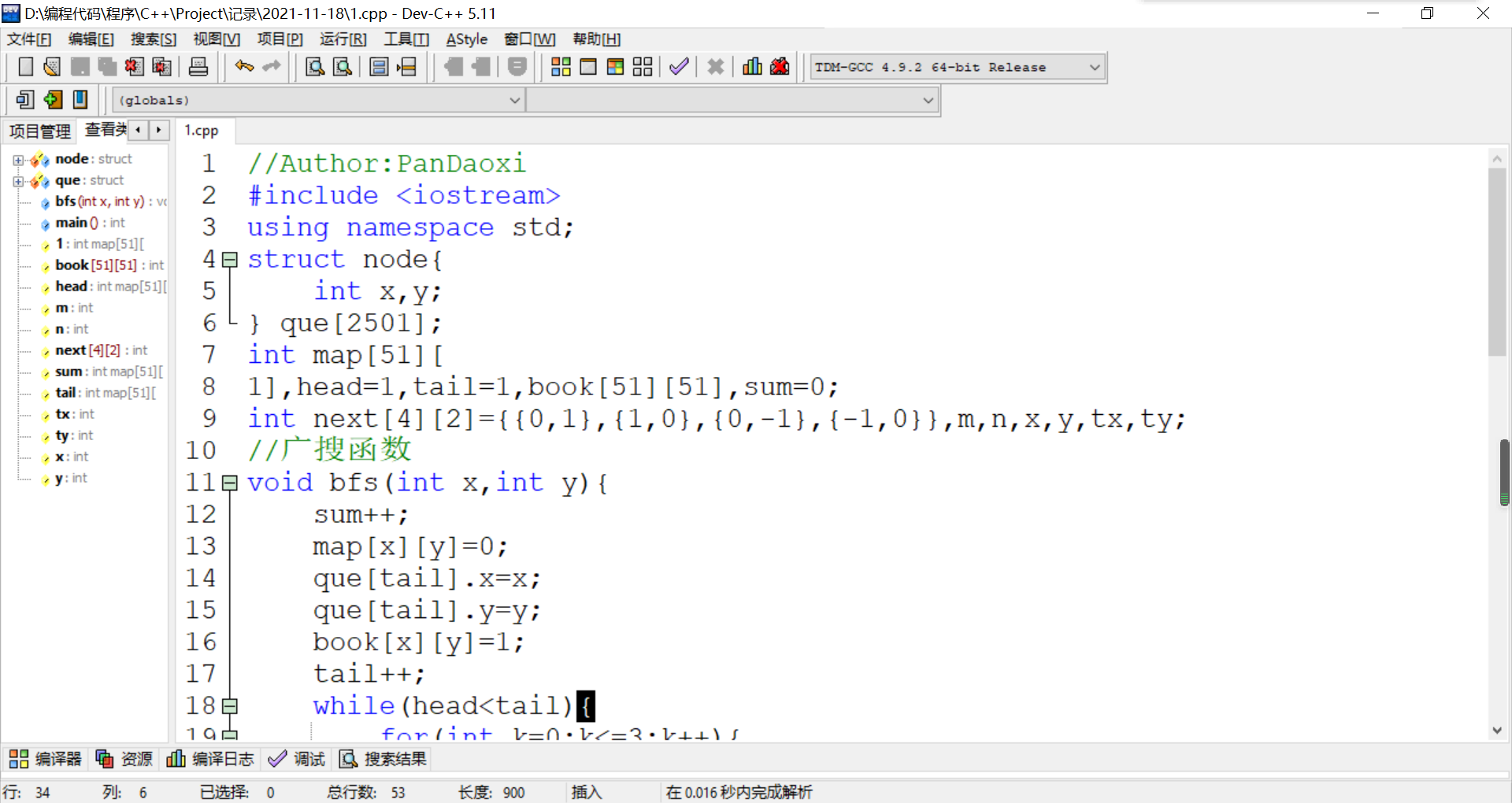 int next[4][2]={{0,1},{1,0},{0,-1},{-1,0}},m,n,x,y,tx,ty;