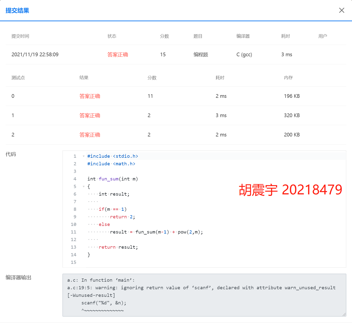 1.1 (题目名称):  1.1.1 贴图展示代码      1.1.2 数据处理 1.数据表达:用了x , a , b , c , result 等变量,这些变量是根据题目要求所定义出来的,类型为整型还有浮点型。 2.数据处理:数据用到了fun_sum(n-1) + pow(2,m)等表达式,用了递归函数,for的嵌套循环,if语句等流程结构。