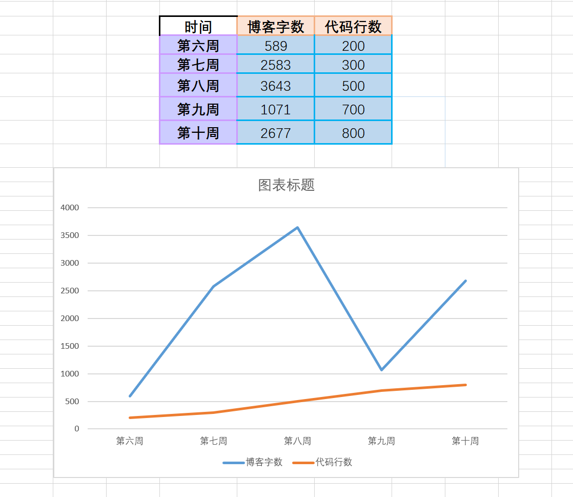 2.1 学习进度条  2.2 累计代码行和博客字数