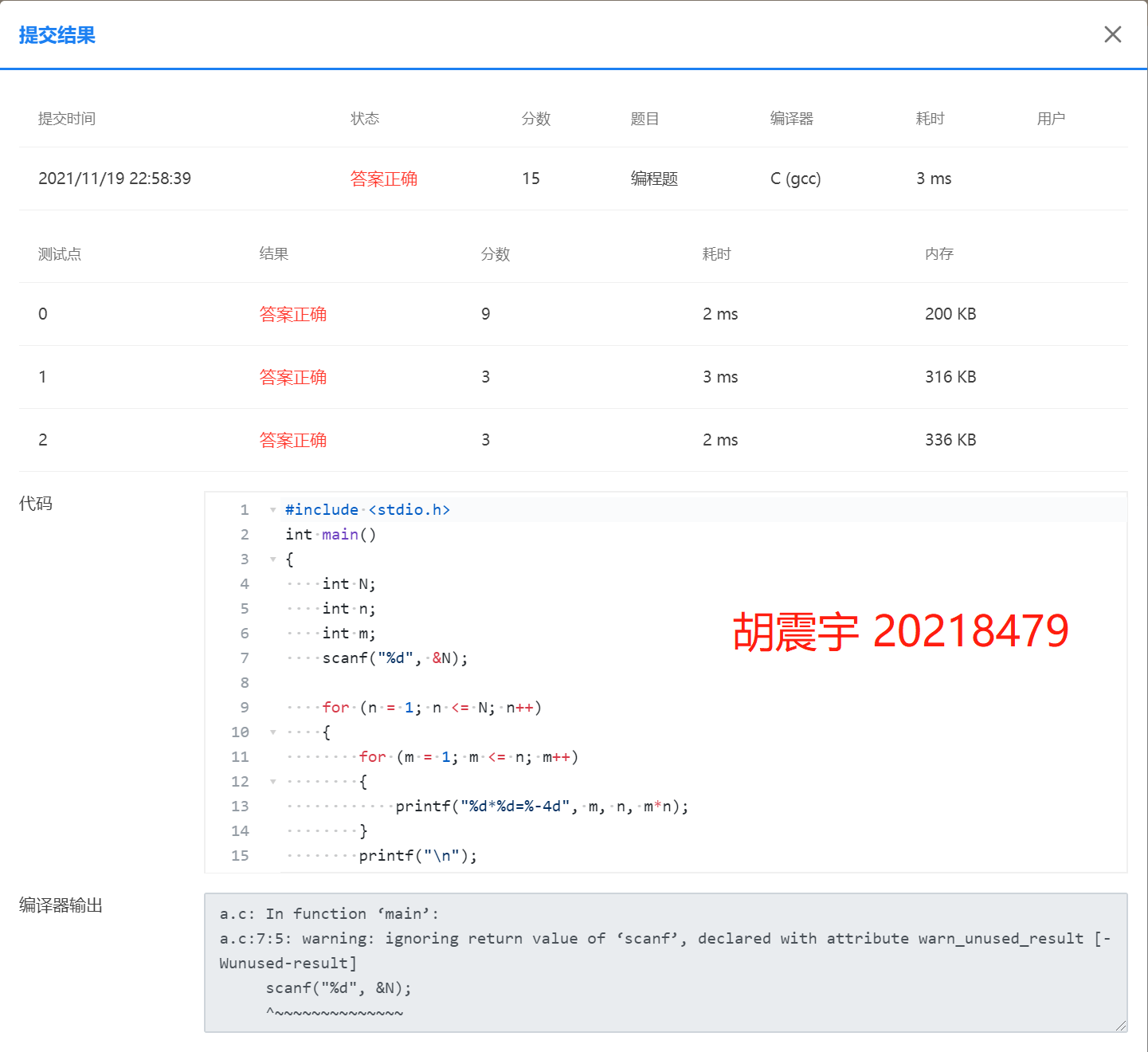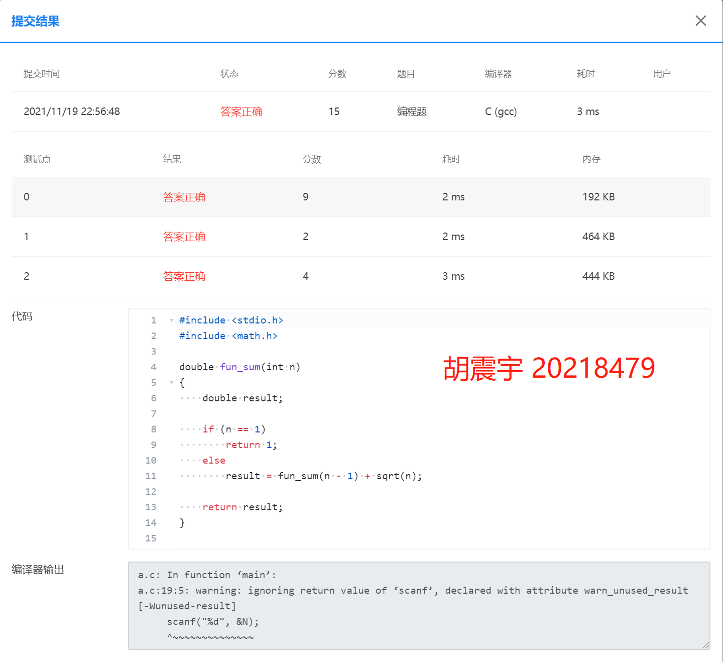 2.3 学习感悟 本周我继续在慕课网中学习C语言,本周我学习的内容是函数,包括自定义函数,函数调用,有参与无参,型参与实参,函数的返回值和递归函数,这一部分是我认为比较难的一部分,所以我花了许多时间去理解概念,并且及时将以运用,通过及时地巩固,我现在已经基本掌握了函数的运用方法,尤其是递归函数,正好我在自学递归函数期间,彭琛老师这一周的内容里面也讲到了递归函数,所以在听了老师对递归函数的讲解之后,再加上我自己的理解,让我对递归函数有了很清晰的概念,刚好这一周的PTA作业中也有题目要用到递归函数,所以这一次的PTA给了我一次检测我自学效果的机会,而我也把握住了这次机会,所以这次的PTA作业我完成的很完美。