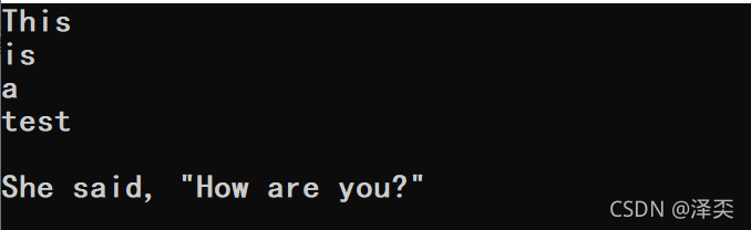 printf( "This\nis\na\ntest\n\nShe said, \"How are you?\"\n");