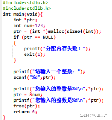 ptr指向malloc申请的内存空间的地址,之后又让ptr指向另外一个整数的地址,那么malloc的内存空间地址就丢失了
