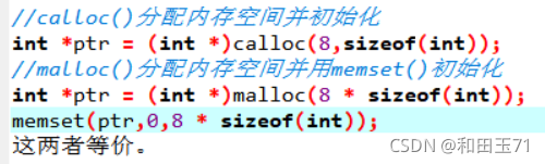 函数原型: void* calloc(size_t nmemb,size_t size);? ? nmemb是元素的个数 calloc函数在内存中动态地申请nmemb个长度为size的连续内存空间 (即申请的内存空间尺寸为nmemb * size),这些内存空间全部被初始化为0 calloc函数在申请完内存后,自动初始化该内存空间为零 但是malloc函数申请完内存空间后不会自动初始化