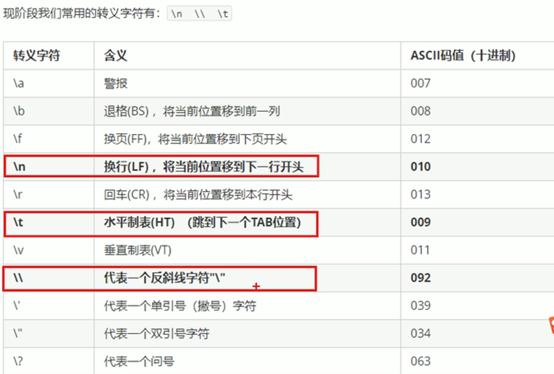 转义字符是用来表示一些不能显示出来的ASCII字符,如换行等。