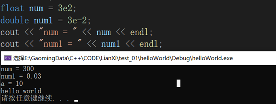 float num = 3.14f;多加一个f,就不会有数据转换这一步,节省CPU资源。 单双精度两者都默认最大输出6位有效数字。如下所示: