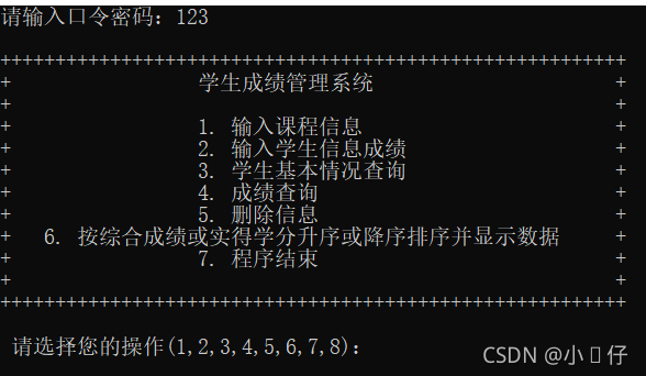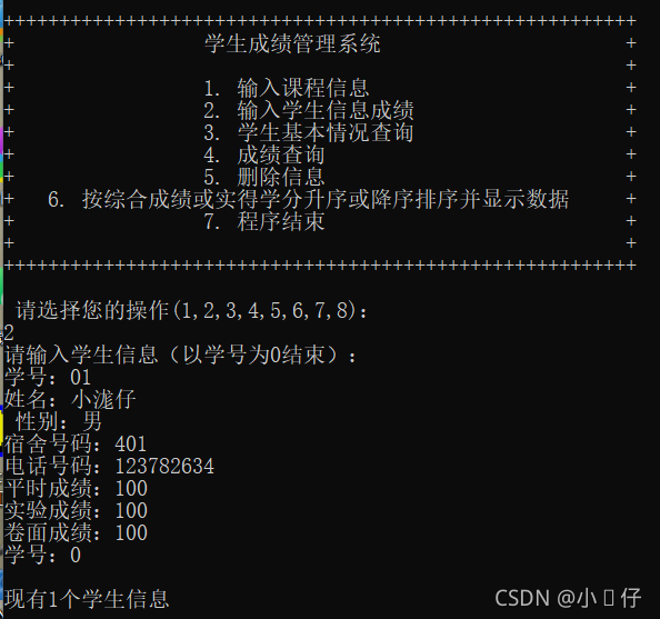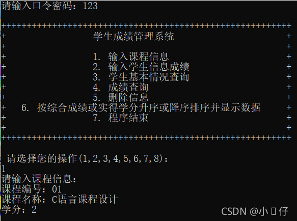 ????????大家好!我是小浝仔,今天给大家分享C&C++期末课程设计——学生成绩管理系统,这个程序是用C++&C语言程序编写的,运行环境为VisualC++? 6.0,实现了学生成绩的管理功能:输入课程信息、输入学生信息成绩、学生基本情况查询、成绩查询、删除信息等等,是学习C++程序很好的参考资料,如果朋友们用来学习或做C++期末课程设计作业一定是可以的,我来共享给大家一些哦!!!大家觉得好的话,记得给个三连哦!!!