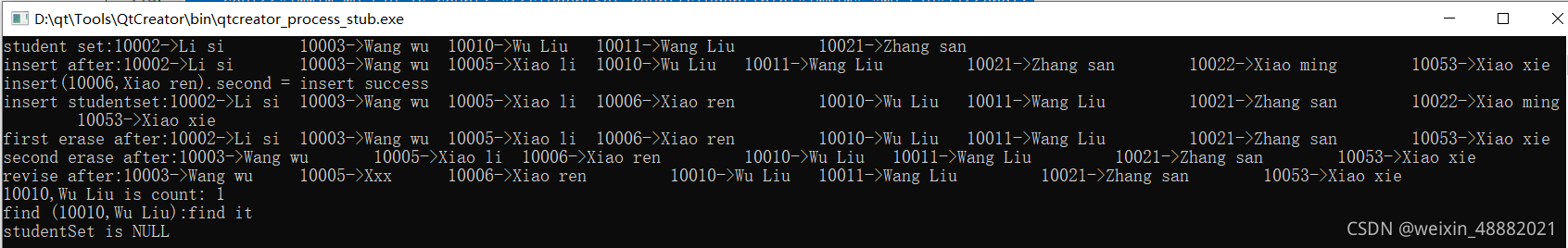 studentSet.erase(studentInfo("10005","Xiao li"));
