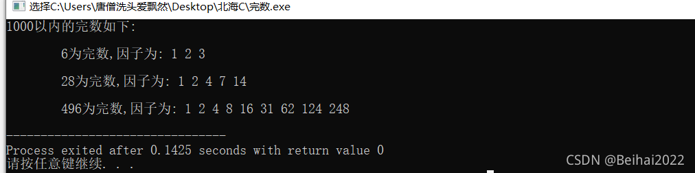 例如:6的因子为1,2,3,而6=1+2+3,因此6为“完数”。