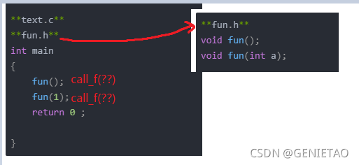 - c语言不支持函数重载是因为重载函数的函数名字相同,在func.o符号表中存在歧义和冲突,链接的时候也存在歧义和冲突,因为在c语言中是直接使用函数名字去表示和查找的。