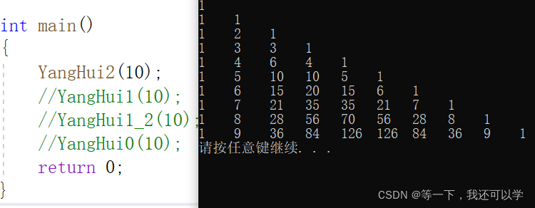if (j == 0 || i == j)//每一行第一个数和最后一个数都为1