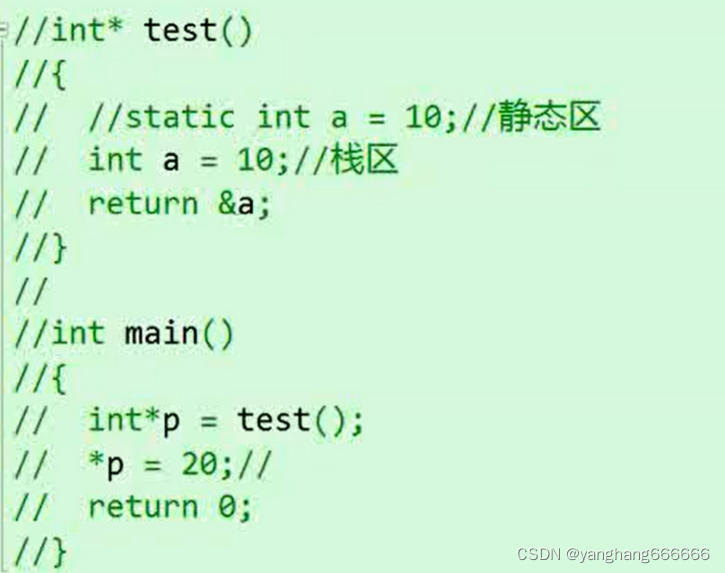 相应的:静态局部变量放在静态区可以传回地址(空间内容还在)