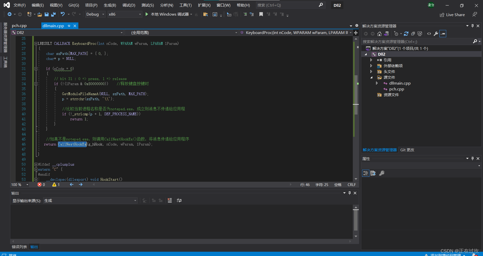 //若非notepad.exe,则调用CallNextHookEx()函数,将消息传递给应用程序(或下一个“钩子”)。