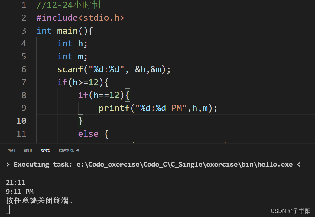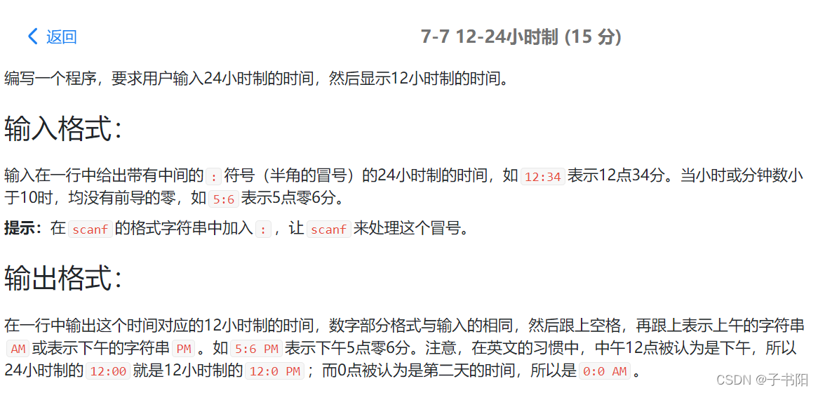 这道题目的要求呢,就是要求用户输入24小时制的时间,然后显示12小时制的时间。
