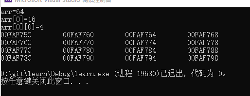 ?可看到,二维数组的内存地址和一维数组一样,都是依次增加。
