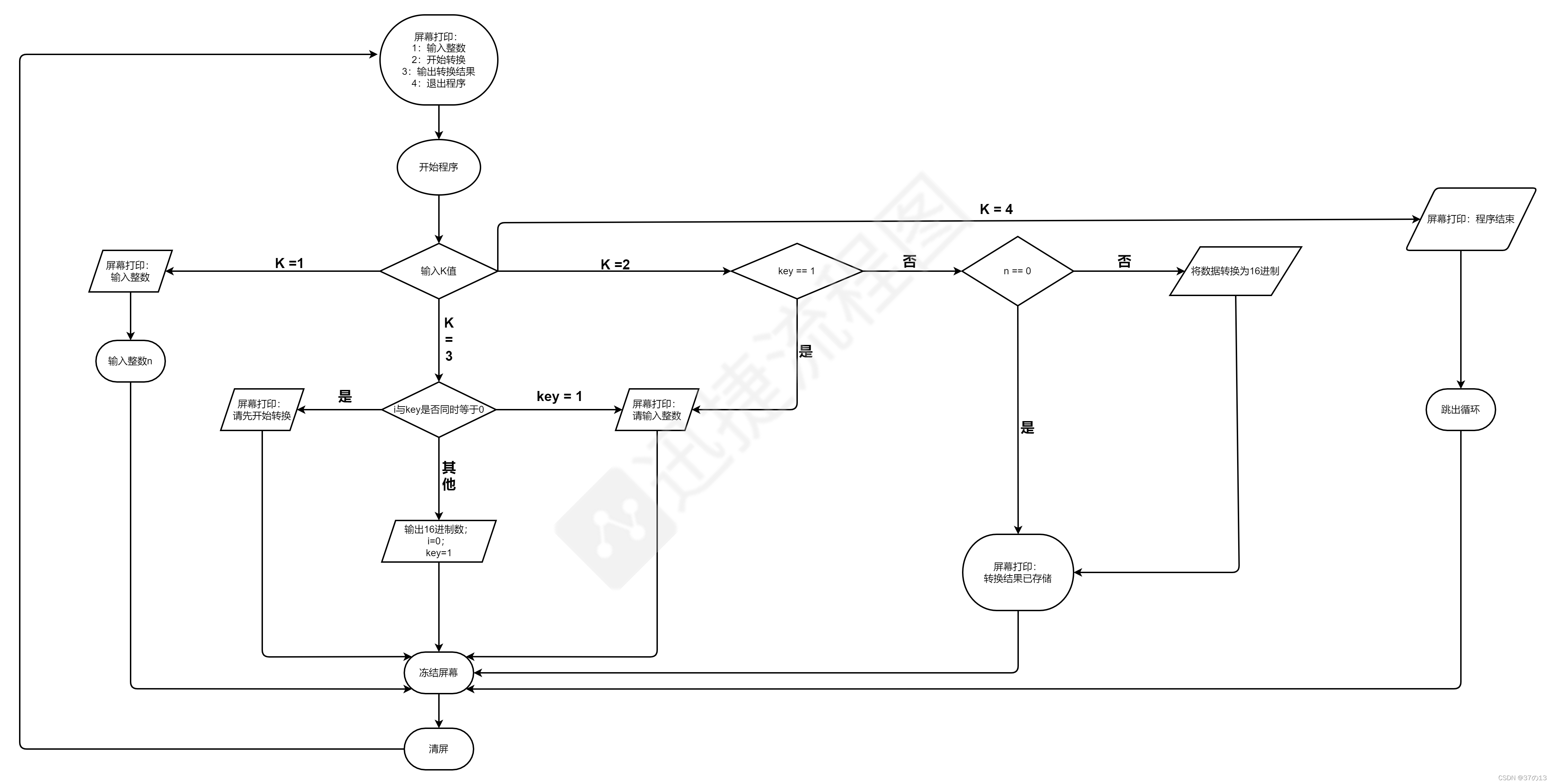 printf("1:输入整数\n2:开始转换\n3:输出转换结果\n4:退出程序\n");
