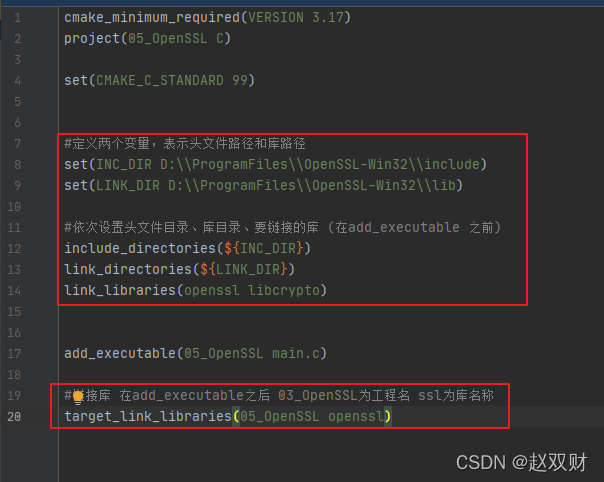 #链接库 在add_executable之后 03_OpenSSL为工程名 ssl为库名称