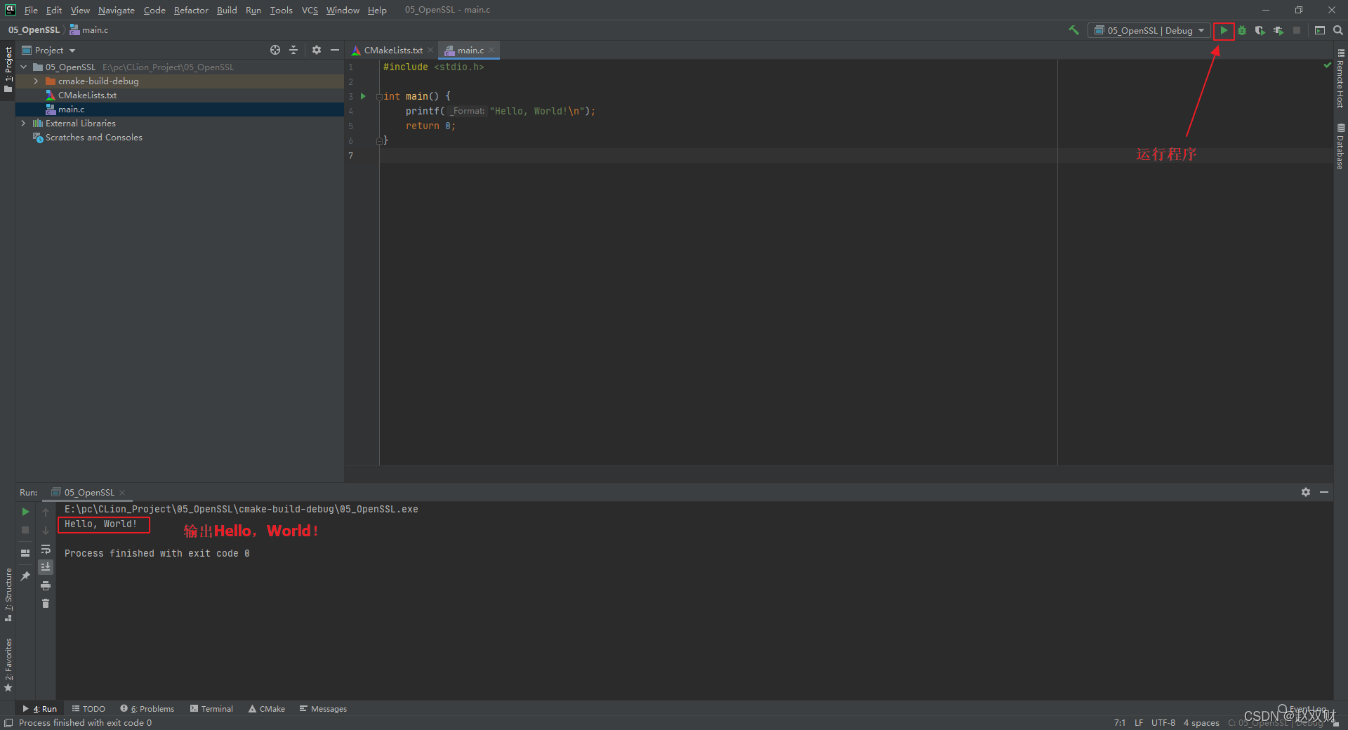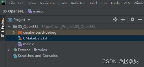 项目中有两个重要文件:main.c 和 CMakeLists.txt 。