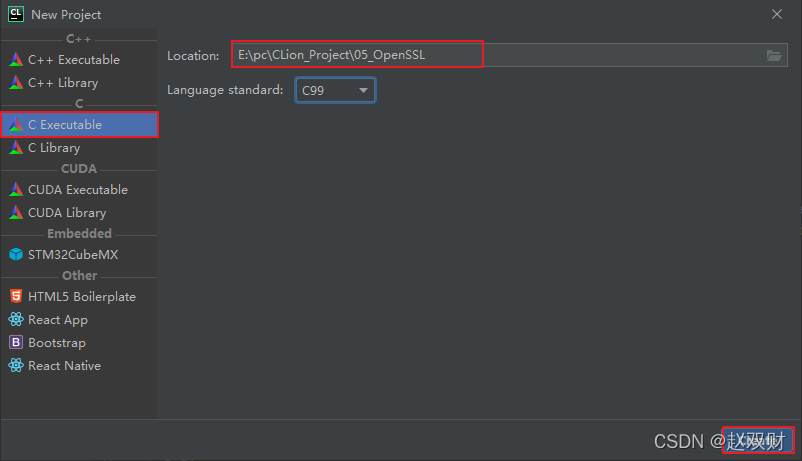 - 选择项目存放的路径。我们命名项目名称为05_OpenSSL;