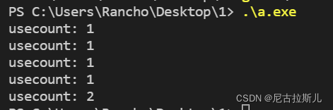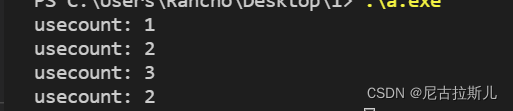 //返回与当前智能指针对象在同一指针上共享所有权的 shared_ptr 对象的数量,如果这是一个空的 shared_ptr,则该函数返回 0。如果要用来检查 use_count 是否为 1,可以改用成员函数 unique 会更快。