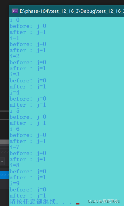printf("after : j=%d\n", j);