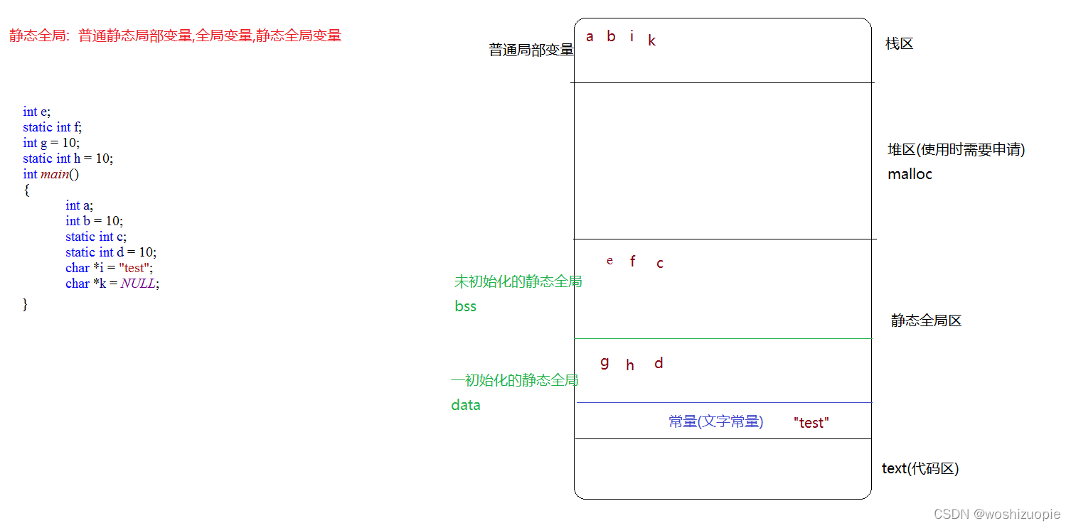 | 局部变量 | 静态局部变量 | 全局变量 | 静态全局变量 | 作用域 | 在定义变量的{}之内有效 | 在定义变量的{}之内有效 | 整个工程,所有文件 | 当前文件 | 生命周期 | 程序运行至变量定义处开辟空间,所在的函数结束之后释放空间 | 执行main函数之前就已经开辟空间,程序结束之后才释放空间 | 执行main函数之前就已经开辟空间,程序结束之后才释放空间 | 执行main函数之前就已经开辟空间,程序结束之后才释放空间 | 未初始化的值 | 随机 | 0 | 0 | 0 |