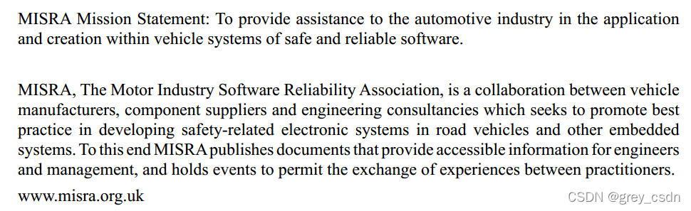 - MISRA C的目标其实还是很明确的,就是汽车电子安全性领域的辅助。