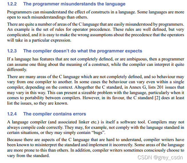 - C语言本身有一些未定义的行为,而这些在不同的编译器中实现不同,可能恰好跟程序员的想法不同。