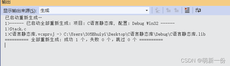 这时我们需要调用C语言的静态库来完成程序的运行,这个静态库可以是别人写好的,也可以自己写好的,这里我用的是自己写的栈(程序在博客栈中写过了),我们把栈的程序弄到静态库项目中:源文件是.c就是C语言静态库,.cpp就是C++静态库