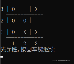 system("cls");qipan(str);printf("先手胜,按回车键继续\n");getchar();getchar();return;