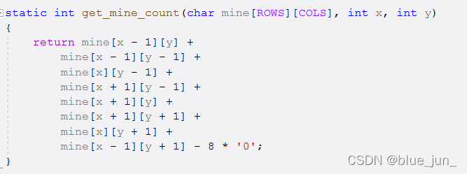 static int get_mine_count(char mine[ROWS][COLS], int x, int y)