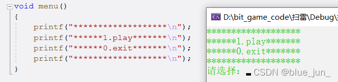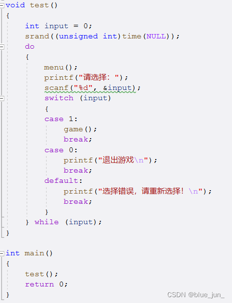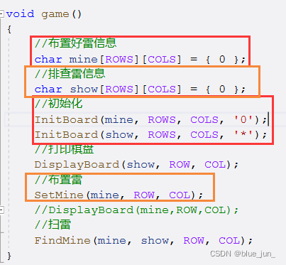 至于主体框架函数,见下:类似于三子棋主体,可以参考上篇博客。