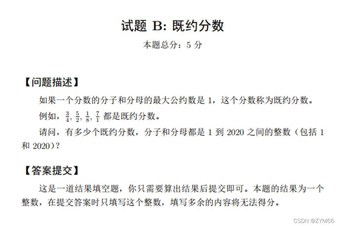 ?题解:这个题我想到的办法就是暴力解决,生成1到2020的分母和1到2020的分子,看一看是不是最大公约数是不是为1,然后利用python本地库fraction进行分数相似性判断(看看是不是分数相等)。需要注意的是,暴力法python计算很慢。(反正是填空题,咱们先做下一道)