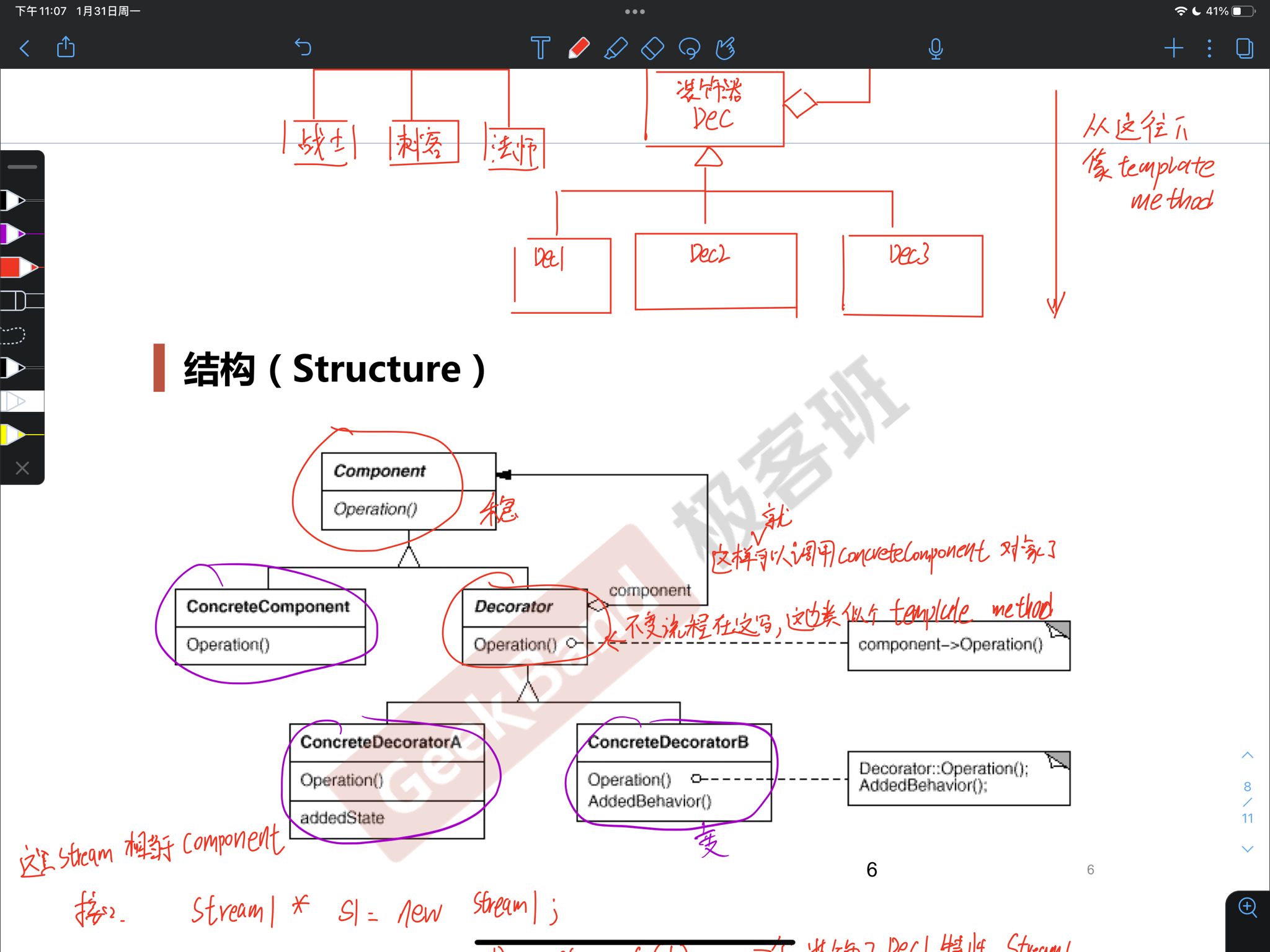 提出的动机来源于对继承的乱用导致的派生类急速增加的问题。 主要是要分清楚积累的派生分别是往“主体”走的or往“拓展”走的 装饰器模式特征一般比较明显,父类在被派生类继承的同时也被包含了 (用侯捷老师的话是委托delegation,因为这里用的是指针)。