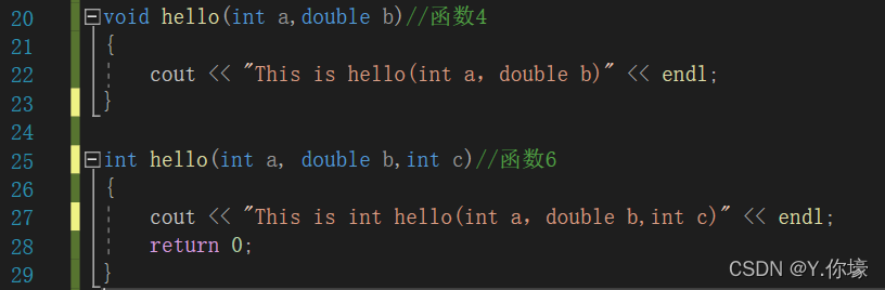 上图介绍了常见的不同情况的函数重载 ,都是用了hello函数名,但是参数不一致。