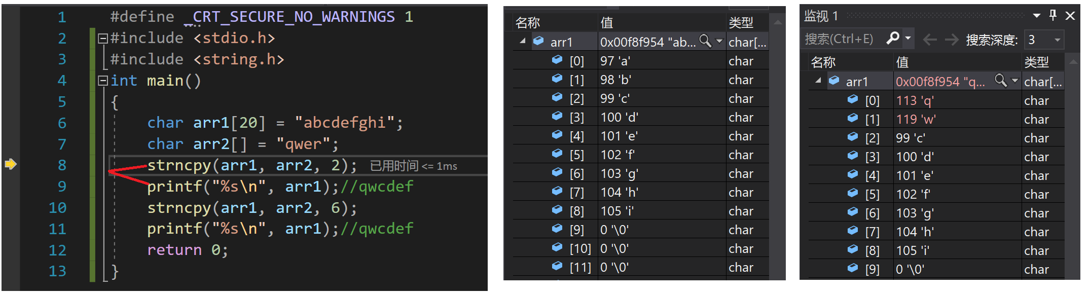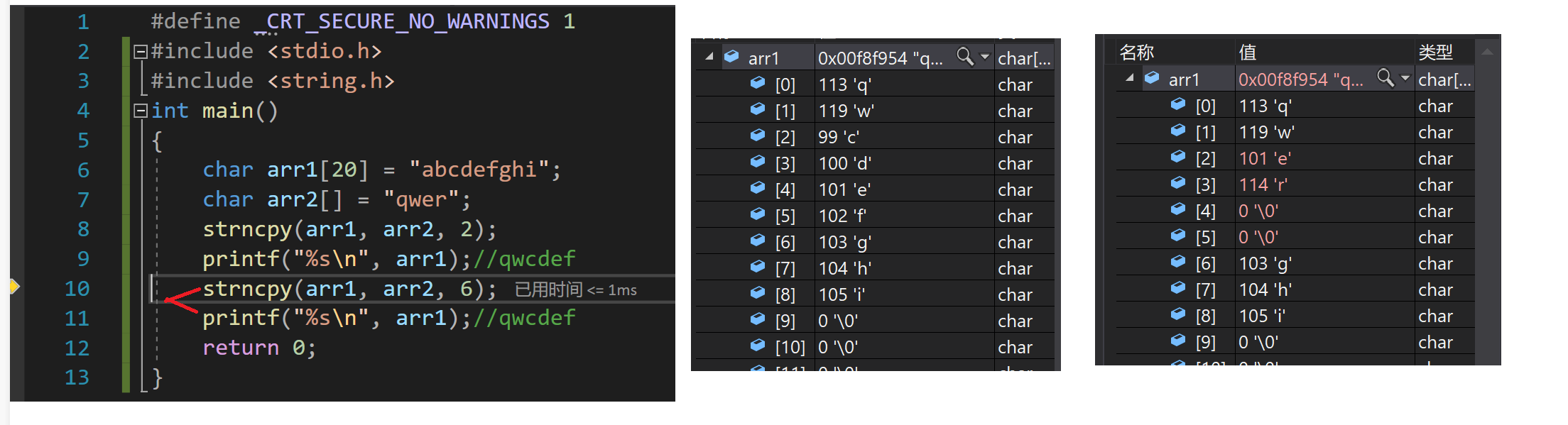 - memcmp与strcmp的不同:strcmp只能比较字符串,而memcmp能比较任意类型,