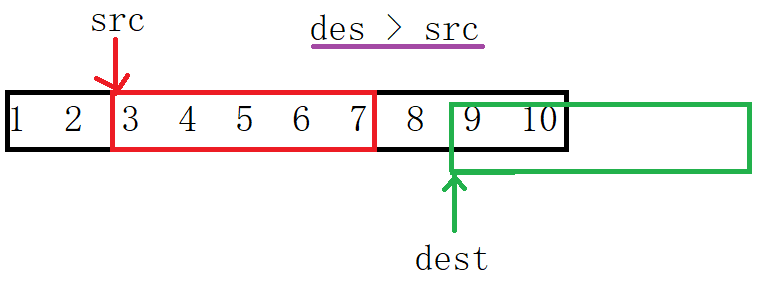 - memcpy自己拷贝自己的时候,?源头和目的地有重叠的部分,是拷贝不成功的