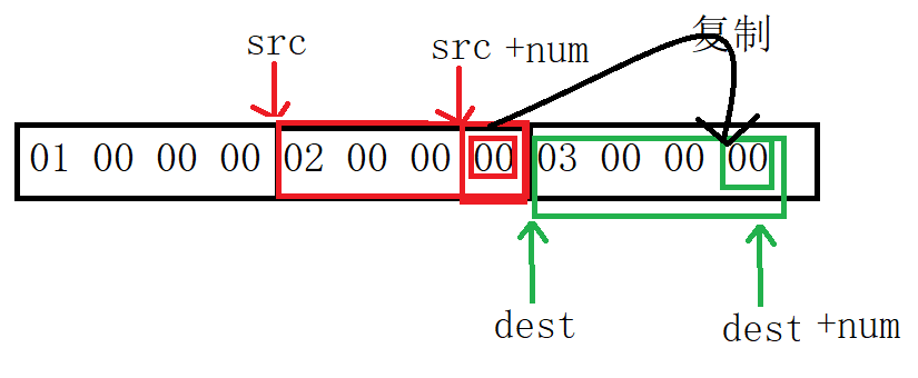 - ?函数memcpy从source的位置开始向后复制num个字节的数据到destination的内存位置。