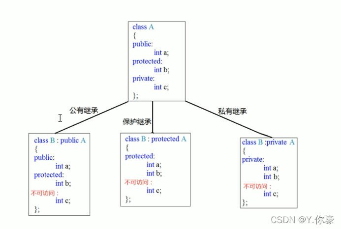 C++中有3种基本的继承方式----公有、保护和私有。