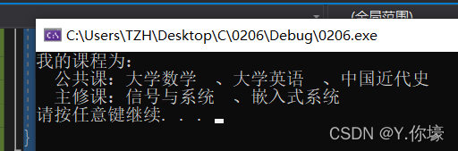 my_Course my("大学数学", "大学英语", "中国近代史","信号与系统","嵌入式系统");