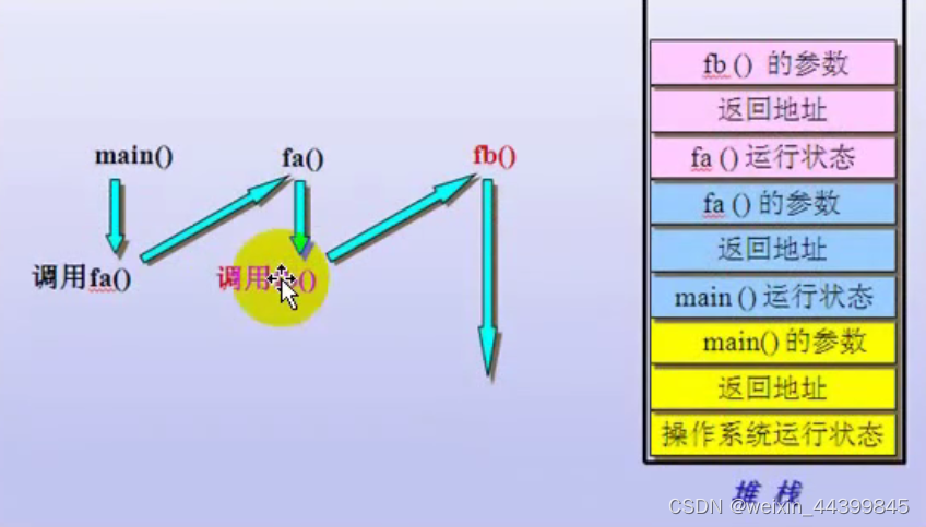 堆栈是一个先进后出的数据结构,栈顶地址总是小于等于栈的基地址。我们可以先了解一下函数调用的过程,以便对堆栈在程序中的作用有更深入的了解。?
