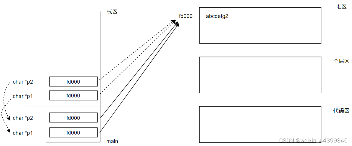 注:如果全局区存入相同的值,则编译器会进行优化,存入一个值,指向相同空间。??